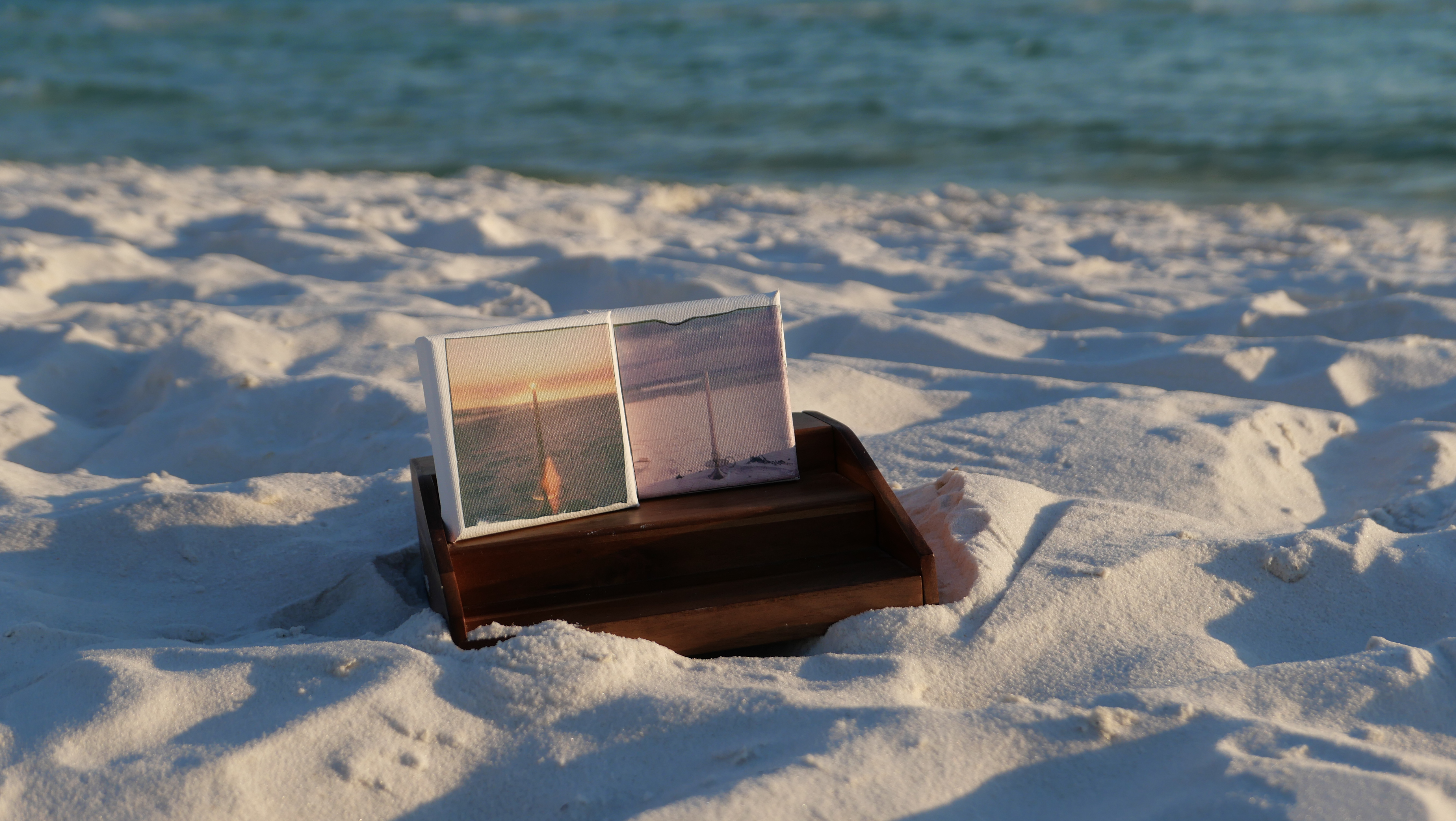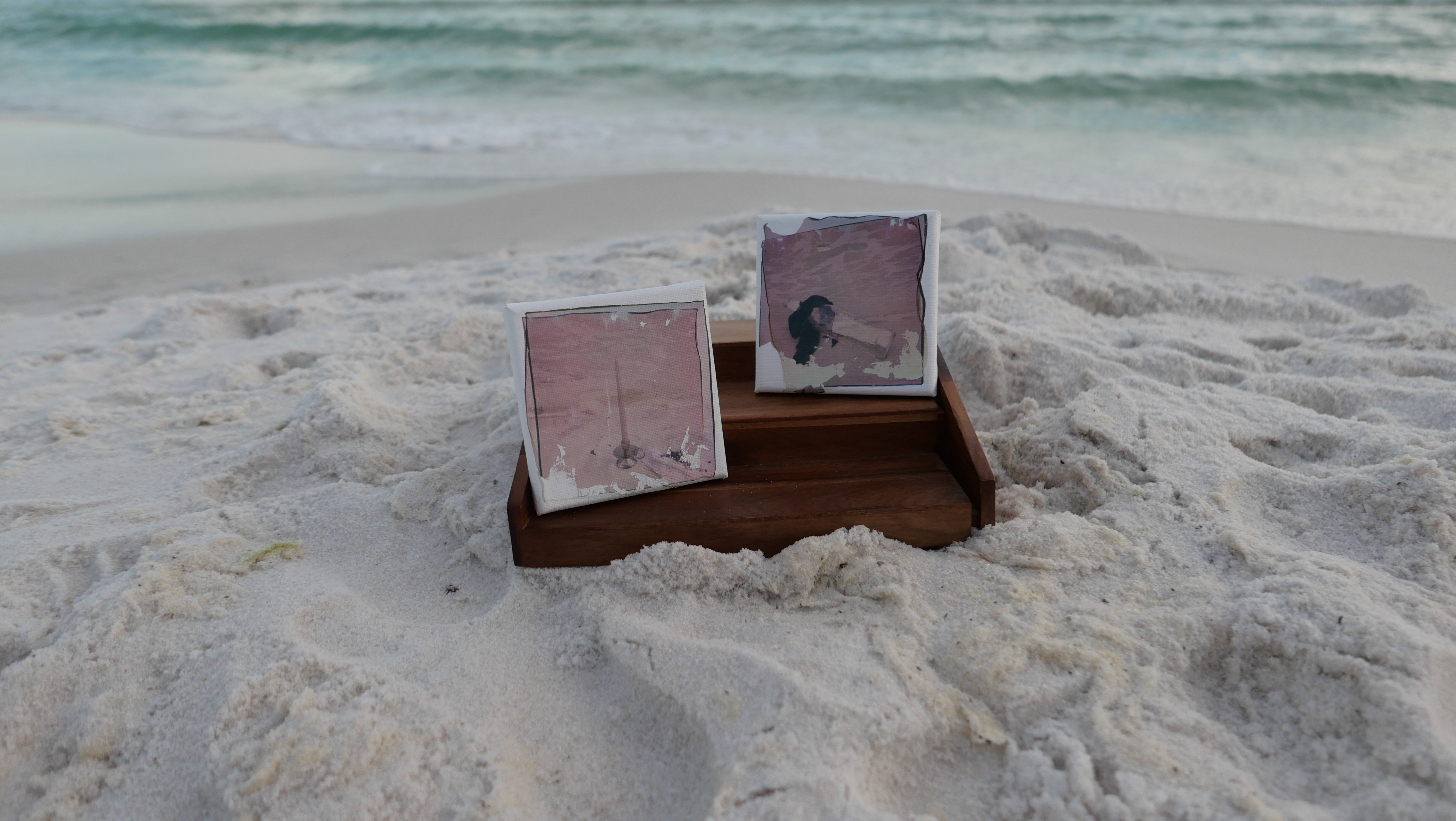 The “Lost Poet” collection is in honor of my late father and his unsent love letter that I found. Rich with symbolism, it blends my coastal surrealist style with tokens of lost love, remembrance, and acceptance. Songs that helped inspire include “Words” by Gregory Alan Isakov and “S P E Y S I D E” by Bon Iver.